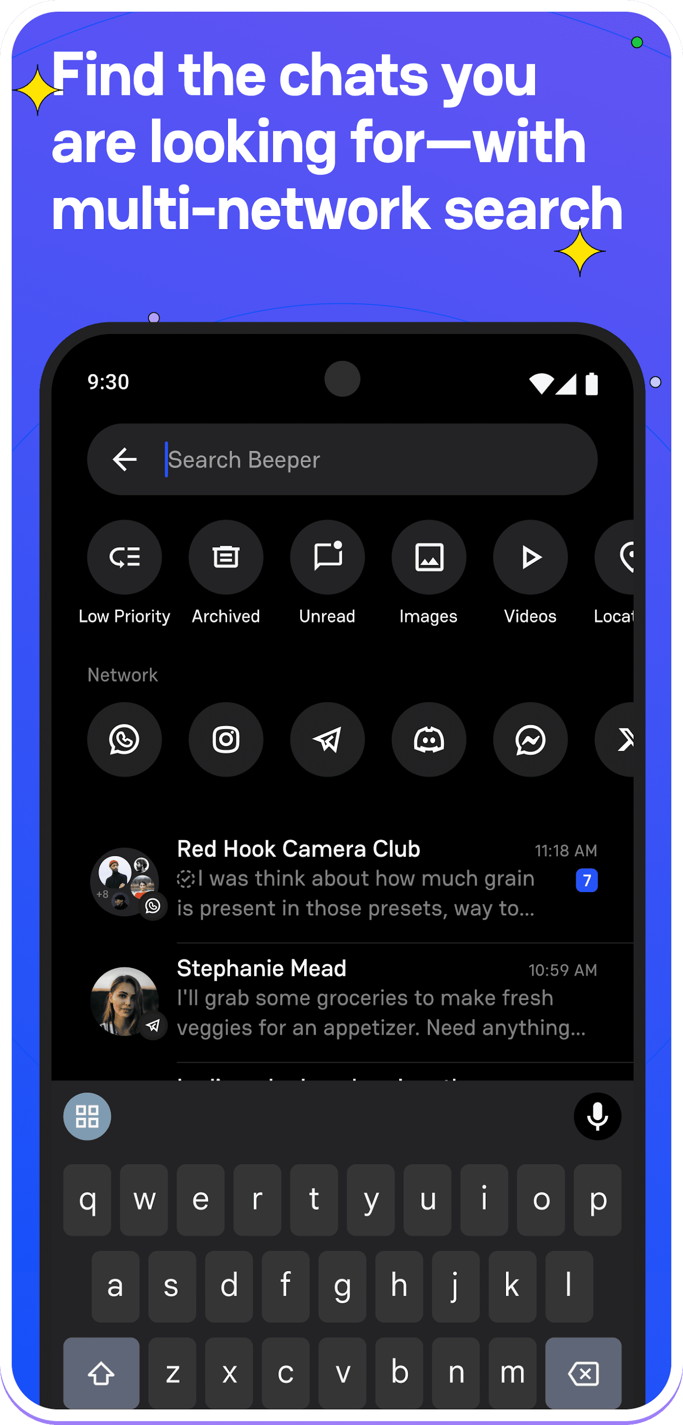 Beeper предоставляет единое входящее пространство, в котором можно просматривать, читать и отвечать на сообщения из разных сетей. Встроенный поиск позволяет находить диалоги и сообщения сразу по всем подключенным сетям. Дополнительные функции уведомлений помогают своевременно получать информацию о новых сообщениях, даже при активной работе в других приложениях. Beeper может использоваться как для личного общения, так и для деловой переписки, где важно быстро реагировать и поддерживать порядок в каналах связи.