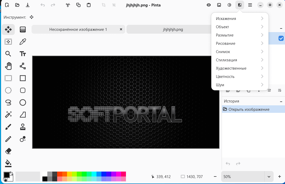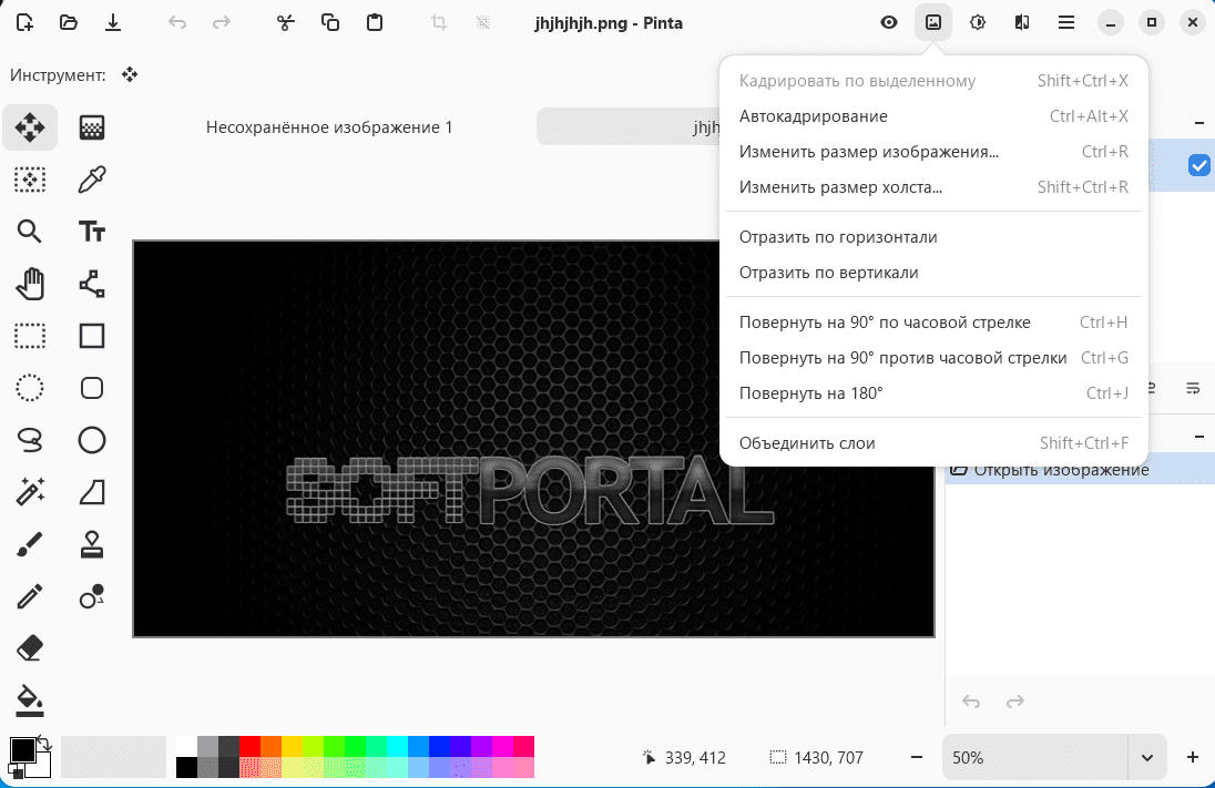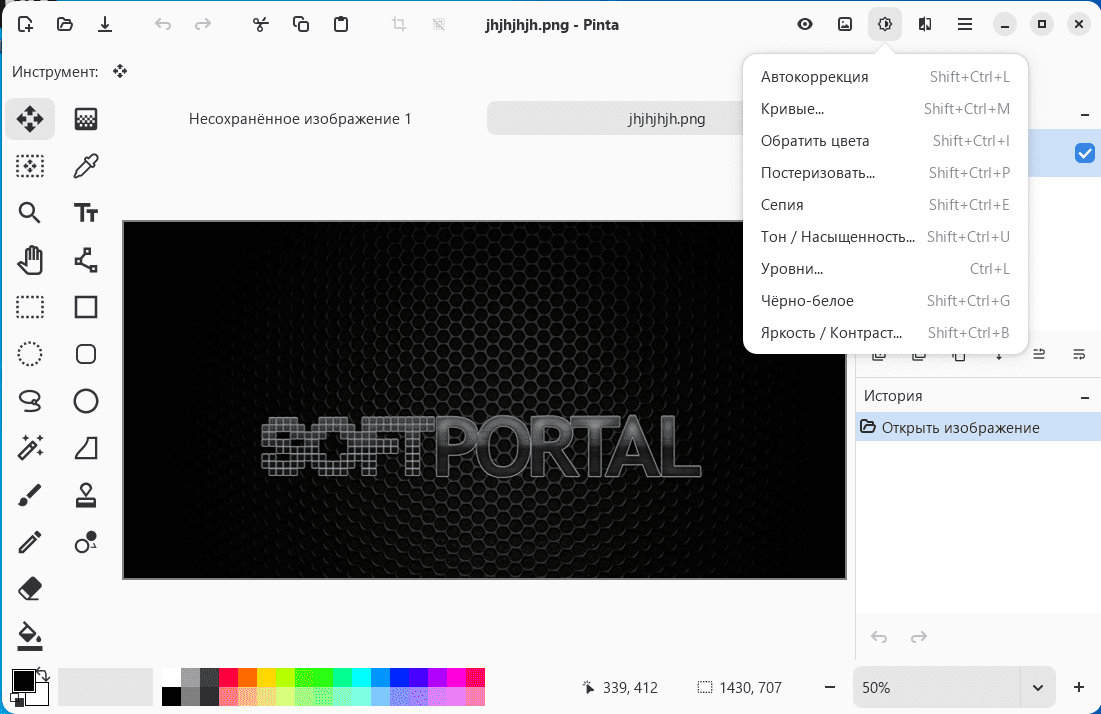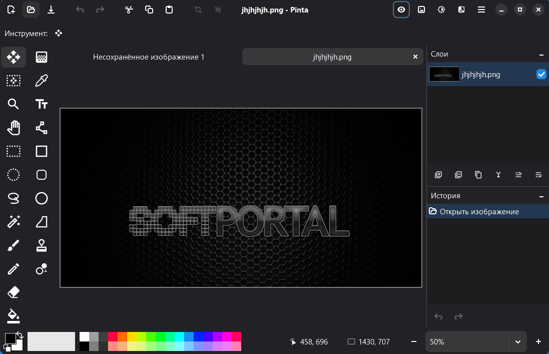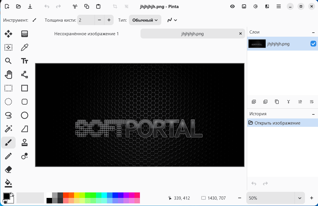 Pinta — графическое приложение для рисования и базового редактирования изображений, с инструментами создания иллюстраций и функциями обработки фотографий. Программа предоставляет рабочую область с поддержкой слоев, что позволяет создавать как простые рисунки, так и более сложные композиции. Поддерживает работу с чистым холстом и с импортированными файлами.