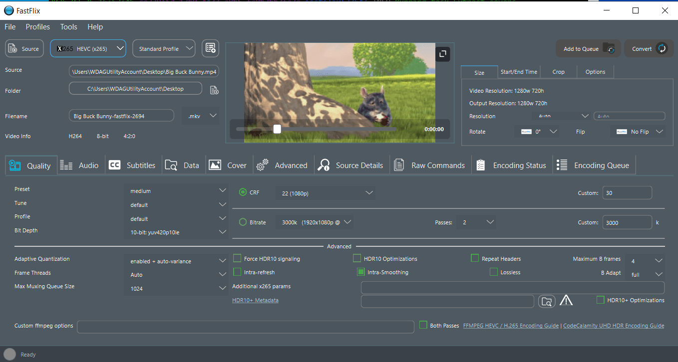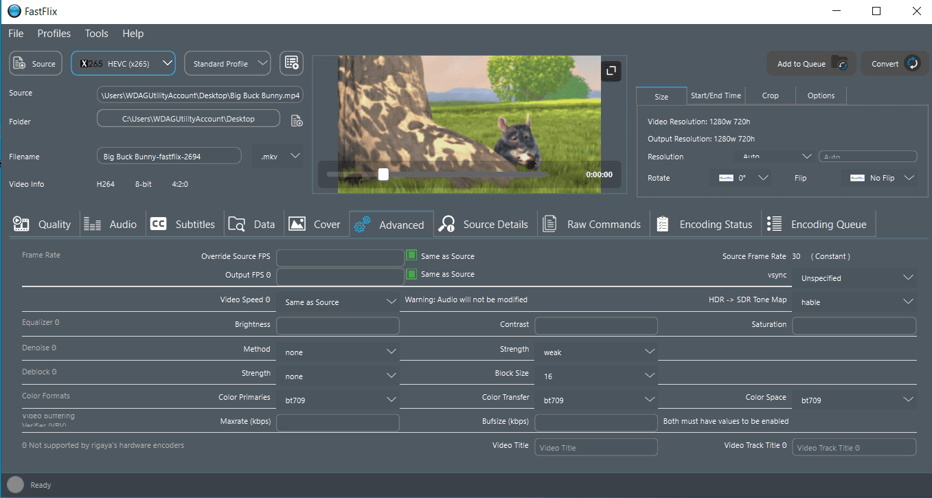 Утилита поддерживает широкий спектр входных форматов и позволяет быстро подготовить видео для хранения, публикации или воспроизведения на различных устройствах. Обеспечивает детальный контроль над параметрами обработки: можно выбирать формат вывода, настраивать качество, управлять аудиодорожками и добавлять субтитры. Встроенный видеоплеер позволяет просматривать материал покадрово перед началом кодирования, а система предустановок помогает быстро применять готовые профили или создавать собственные конфигурации. Поддерживается работа с HDR-видео и перенос соответствующих метаданных. Дополнительные инструменты включают базовую коррекцию изображения, фильтры шумоподавления и настройку цветовых параметров.