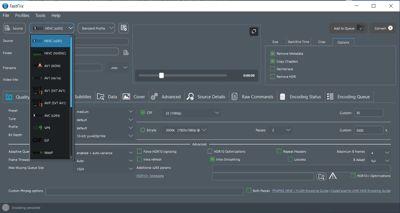 FastFlix — приложение для кодирования и конвертации видеофайлов, которое предоставляет графический интерфейс для работы с возможностями FFmpeg. Предназначен для обработки медиаконтента с минимальной потерей качества, сохранением исходных метаданных и возможностью интеграции субтитров. Решение ориентировано на пользователей, которым требуется удобный инструмент для перекодирования видео без необходимости работать с командной строкой.