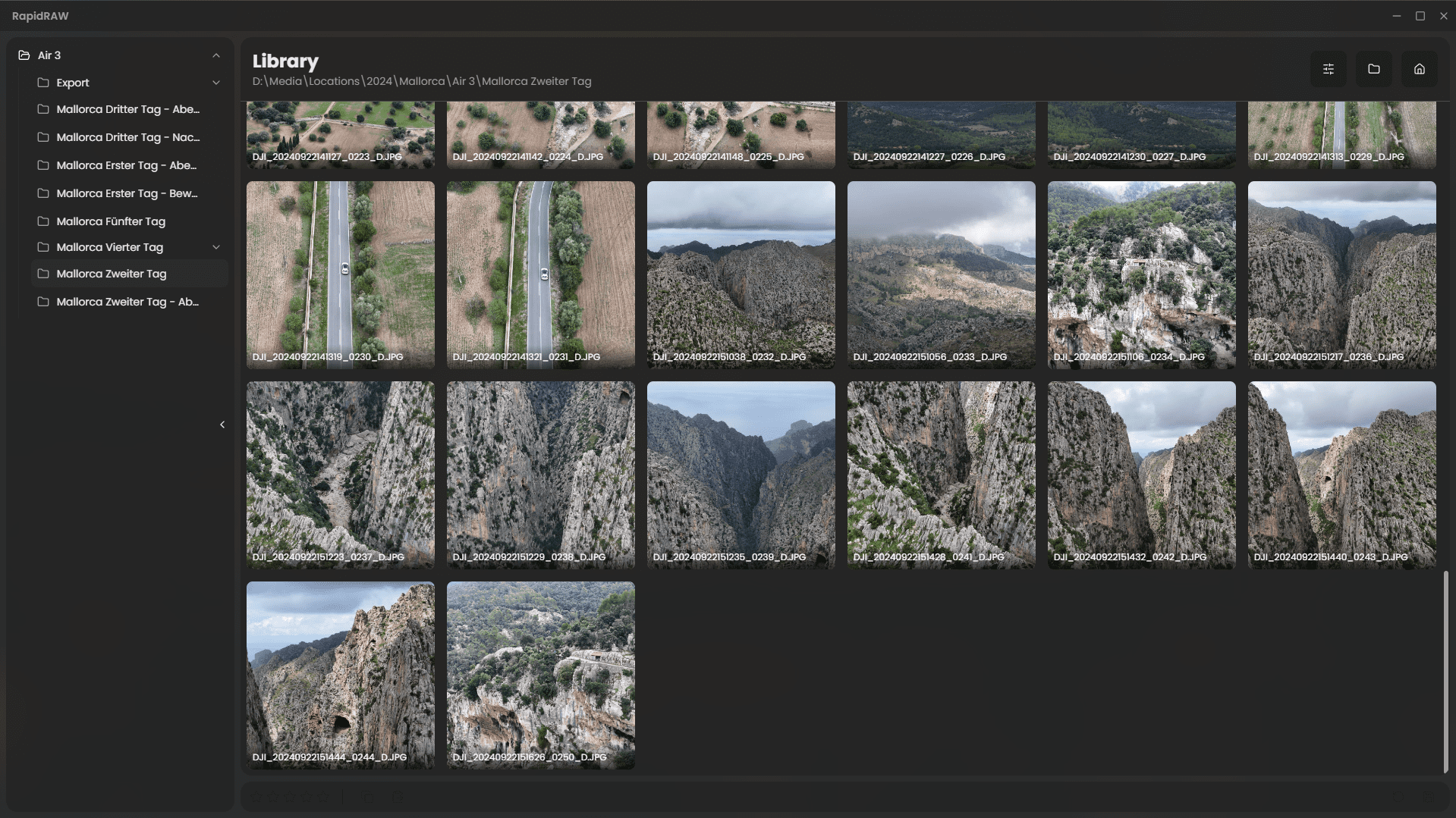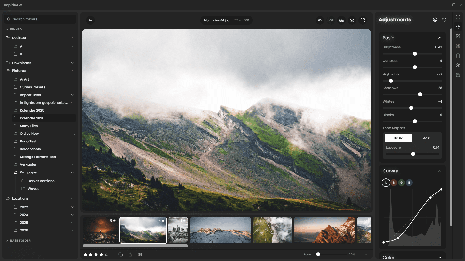 RapidRAW — приложение для работы с фотографиями в формате RAW, обеспечивает быстрый просмотр, базовую обработку и упрощённое управление большими фотоколлекциями. Создано как более лёгкий инструмент по сравнению с профессиональными редакторами, которые требуют значительных ресурсов системы и времени на загрузку файлов, поэтому позволяет ускорить этап предварительной оценки снимков и выполнить основные коррекции без сложной настройки рабочего процесса.