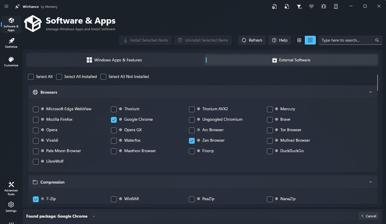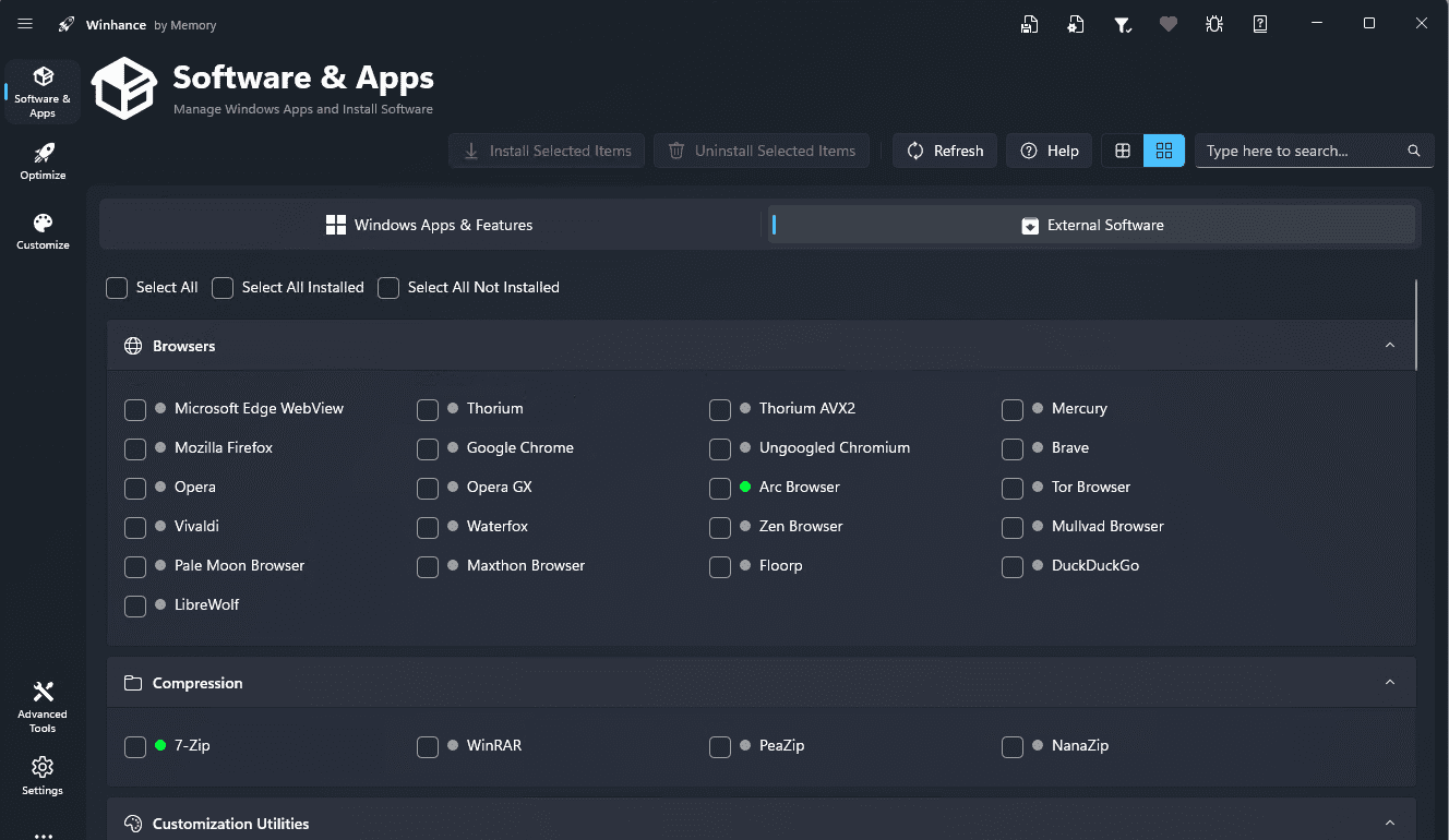 Winhance — инструмент для управления установленными приложениями и компонентами Windows, помогает оптимизировать и настроить ОС. Помогает удалить предустановленные приложения и ненужные функции, изменить системные параметры и создать индивидуальную конфигурацию ОС под конкретные задачи. Решение объединяет в одном интерфейсе стандартные возможности Windows и упрощает доступ к настройкам, которые обычно распределены по разным разделам системы.