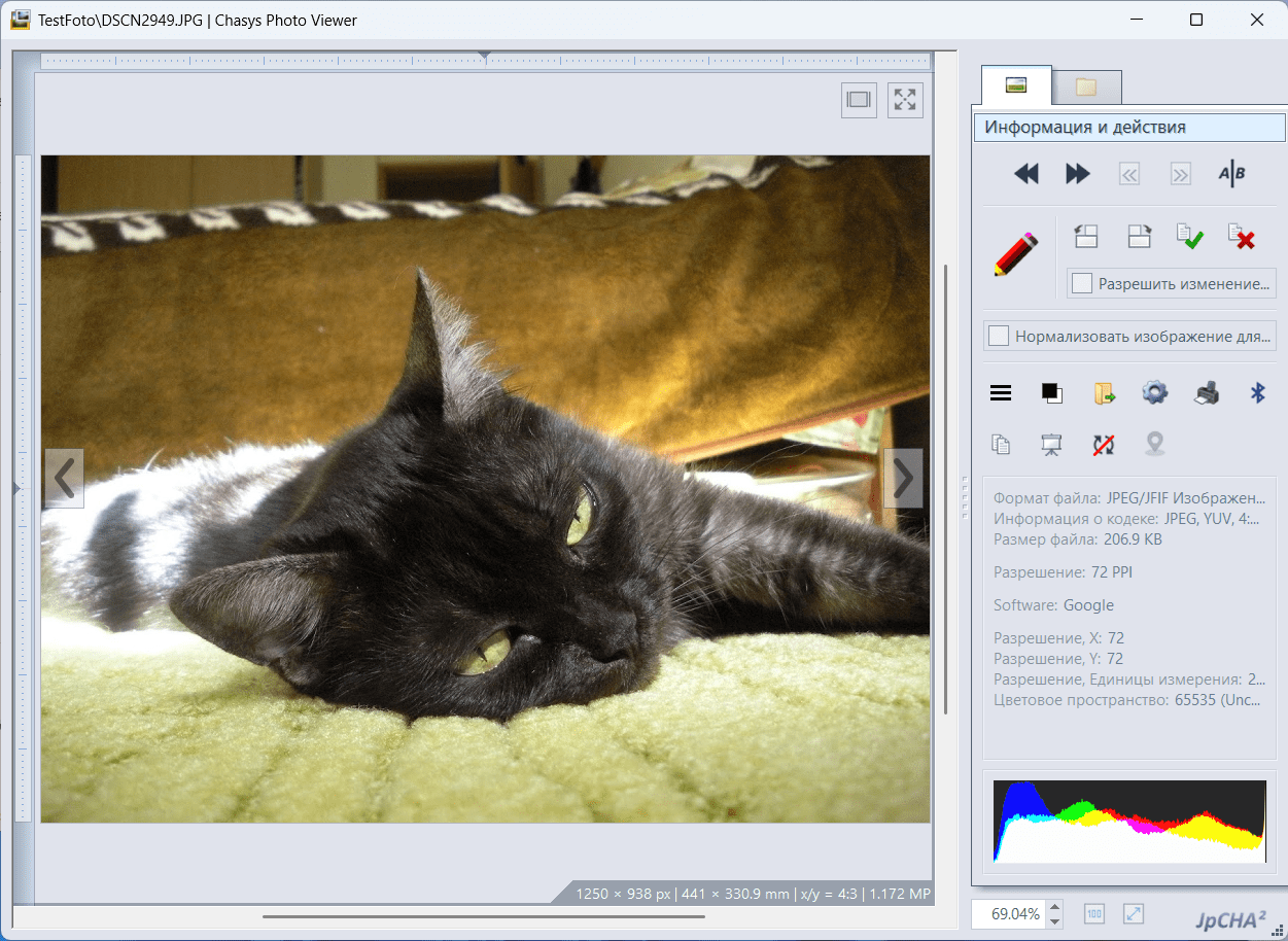 Chasys Photo поддерживает большое количество графических форматов, включая популярные форматы JPEG, PNG, GIF, TIFF, WebP и HEIF, а также специализированные и редкие форматы. Важной особенностью является поддержка форматов файлов, используемых другими графическими редакторами, такими как проекты Photoshop, GIMP, Krita и другими.