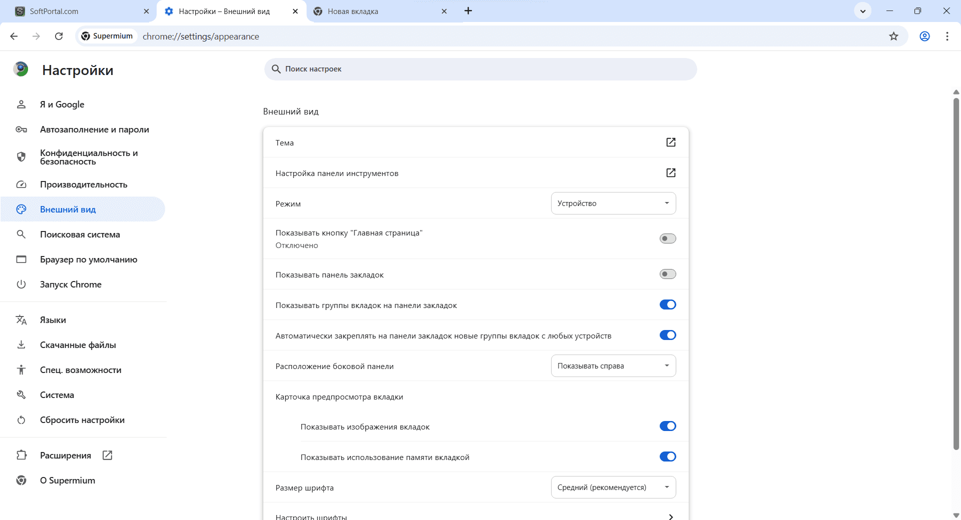Supermium — веб-браузер на базе Chromium, ориентированный на работу в устаревших версиях Windows, включая XP, 2003, Vista, 7 и 8.x. Программа сохраняет современную функциональность движка Chromium и при этом адаптирована для систем, которые больше не поддерживаются актуальными браузерами. Это позволяет использовать привычные веб-технологии на старом оборудовании без необходимости обновления операционной системы.