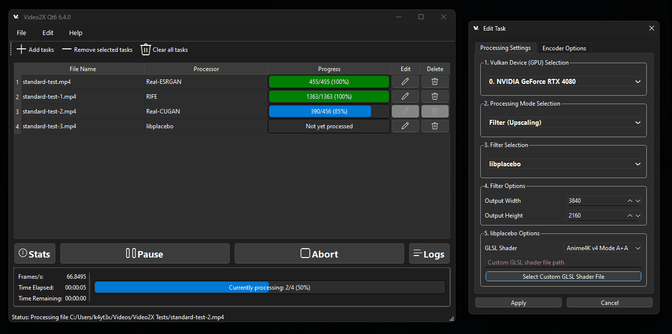 - поддержка моделей Anime4K v4, Real-ESRGAN, Real-CUGAN и RIFE;