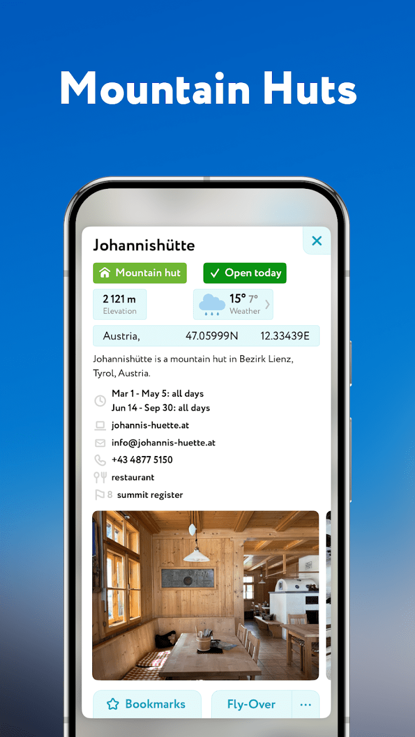 Основная особенность приложения — визуализация местности в формате 3D. Пользователь может изучать окружающий ландшафт, определять названия вершин и получать сведения о них. Приложение также помогает заранее оценить сложность маршрута и контролировать передвижение с помощью GPS. Поддержка офлайн-режима позволяет использовать функции без подключения к сети.
