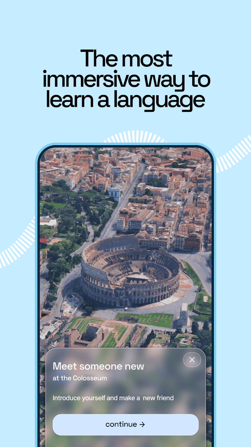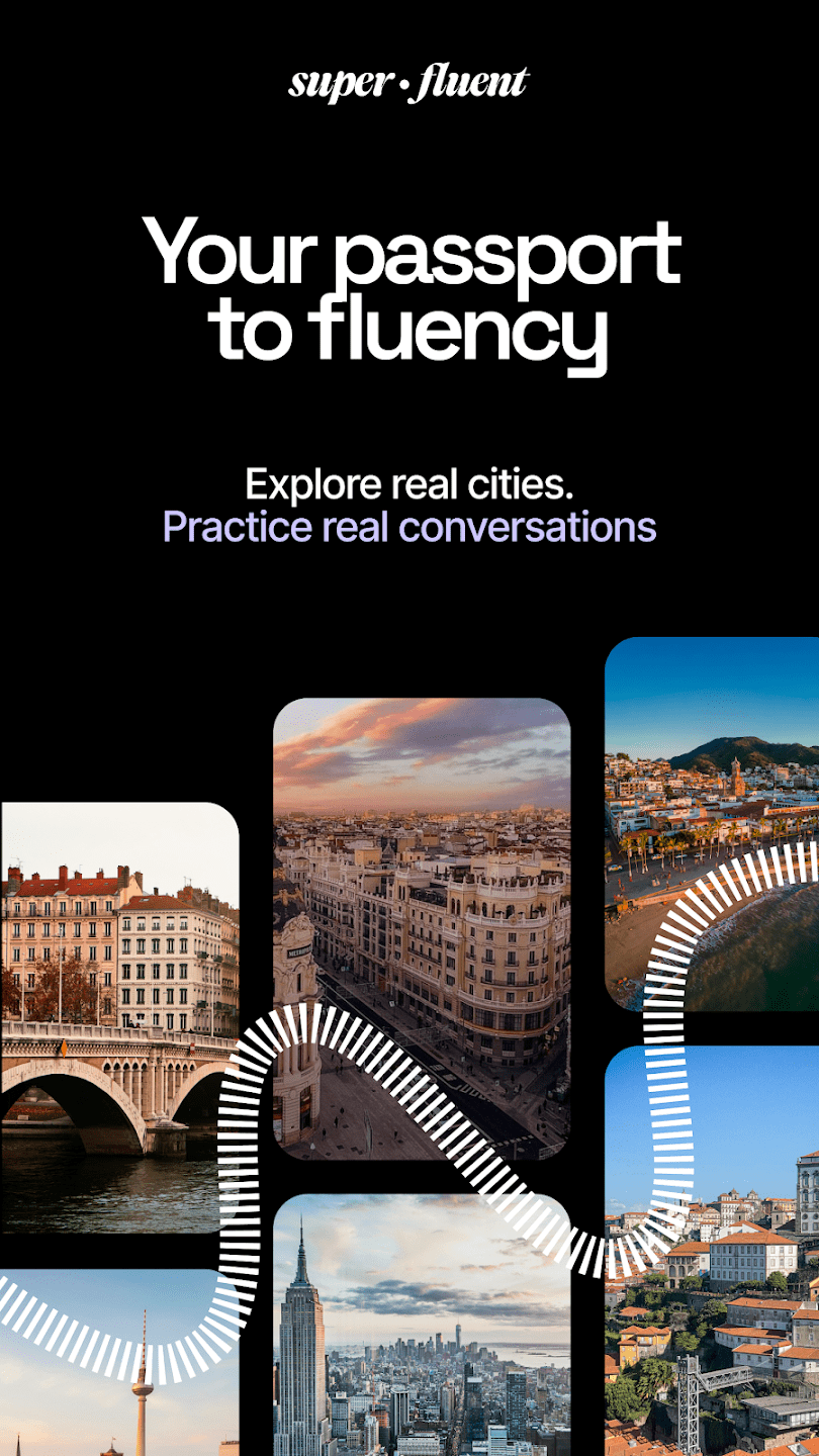 Superfluent — приложение для изучения иностранных языков с упором на практику разговорной речи в повседневных ситуациях. Обучение построено вокруг интерактивных сценариев, связанных с реальными местами и типичными диалогами. Пользователь взаимодействует с виртуальной средой, где отрабатывает навыки общения в контексте поездок, покупок, общения с местными жителями и других ситуаций.