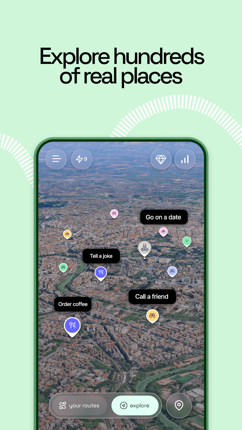 - интерактивная карта с доступом к различным сценариям общения;
