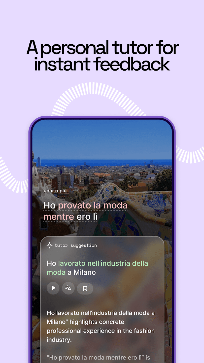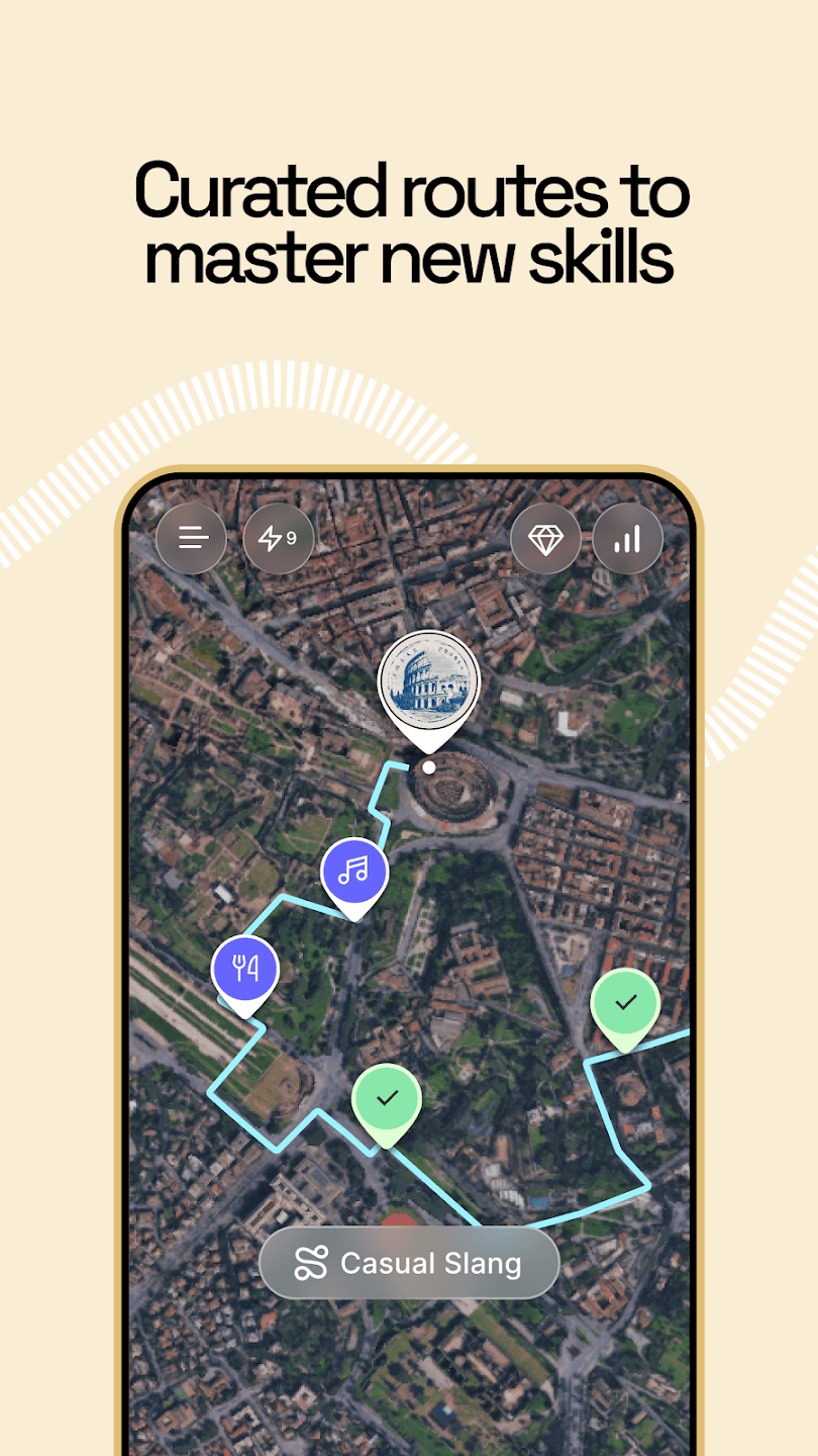 Программа предлагает пошаговое развитие навыков через готовые маршруты и свободное изучение. В процессе пользователь получает обратную связь по произношению, построению фраз и выбору слов, что позволяет корректировать ошибки сразу во время диалога. Прогресс фиксируется и отображается по мере прохождения сценариев, что помогает отслеживать уровень владения языком и повторять сложные темы.