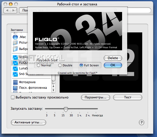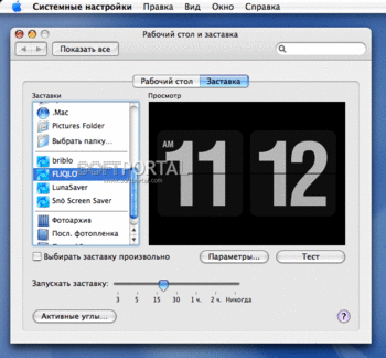 Fliqlo – модуль хранителя экрана с часами. Выполнен в виде табло, на котором переворачиваются пластины с цифрами. Этот скринсейвер явно понравится поклонникам фильма "День Сурка".