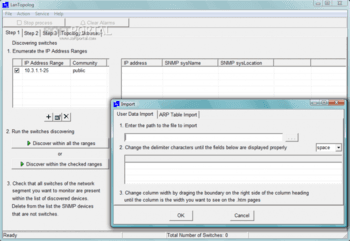 - автоматическое построение физической топологии действующей сети на основе данных, собранных с коммутаторов по протоколу SNMP