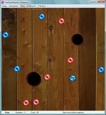 Чтобы избавится от столь негативного дара, регулярно проводятся состязания по Склезанке. На игровом поле перемешаны фишки двух цветов. Ваша задача загнать все фишки противника в лузы, используя фишки своего цвета как ударные. Каждый из участников турнира поочередно совершает удары до первой ошибки: если он уничтожит свою склезанку или не сможет уничтожить ни одной склезанки другого цвета, то право удара переходит к следующему игроку. Победителю турнира, кроме почета и уважения, даруется Божья радость и благодать.