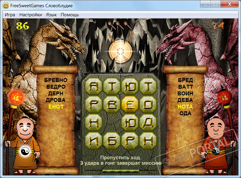 СЛОВОБЛУДИЕ - аркадно-словесная головоломка, в которой придется проявить всю свою эрудицию по составлению слов из предложенного набора букв. По легенде, много веков назад основателями монастырей Шу и Ляо был создан Монумент из древнего осколка метеорита. На его поверхности были размещены руны с письменами, которые стали залогом процветания монастырей в течение веков.