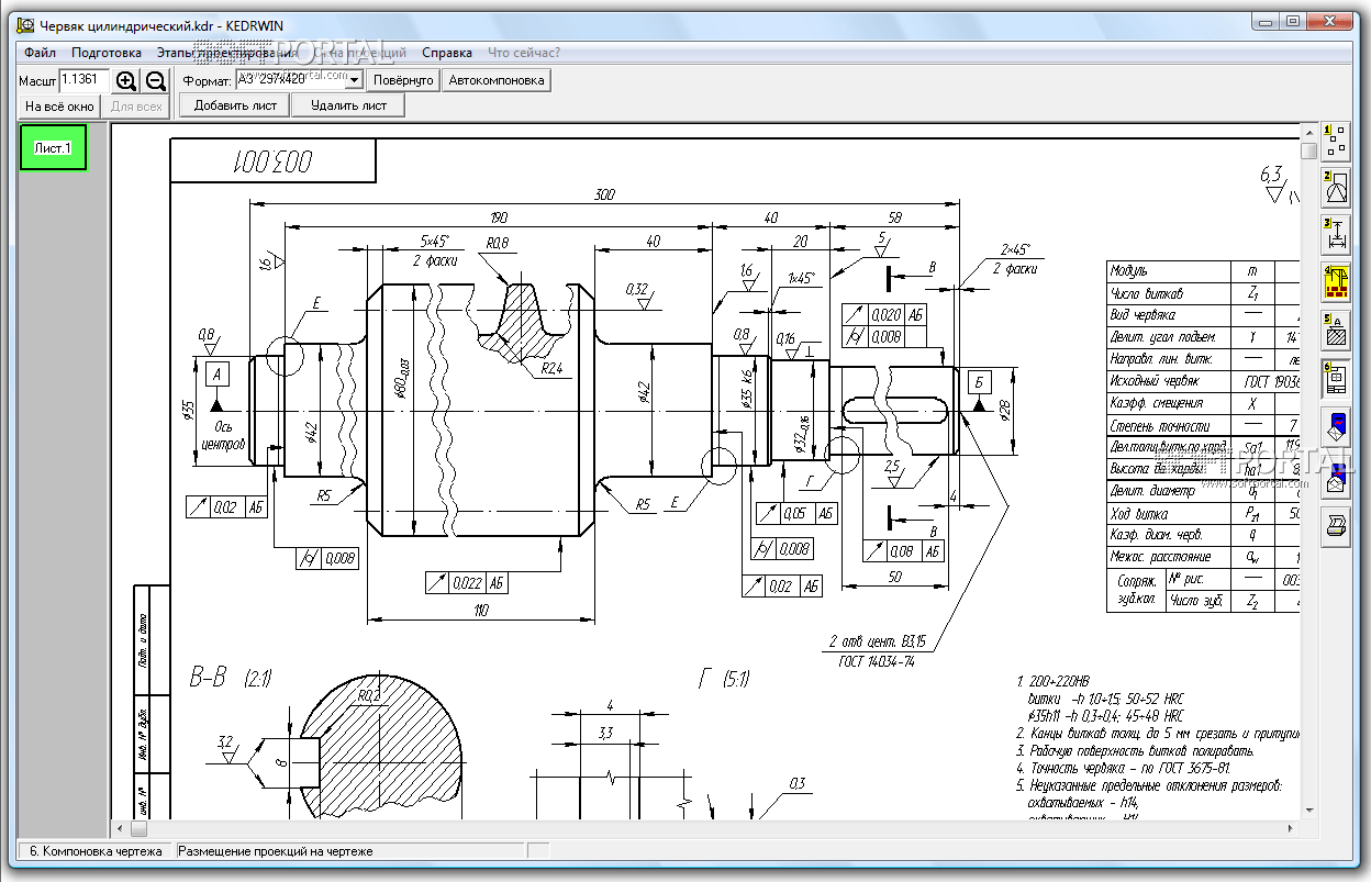 KEDRWIN (Нарисуй чертеж) 3D+ - Универсальная программа предназначена для подготовки в соответствии с ЕСКД чертежей различного назначения.