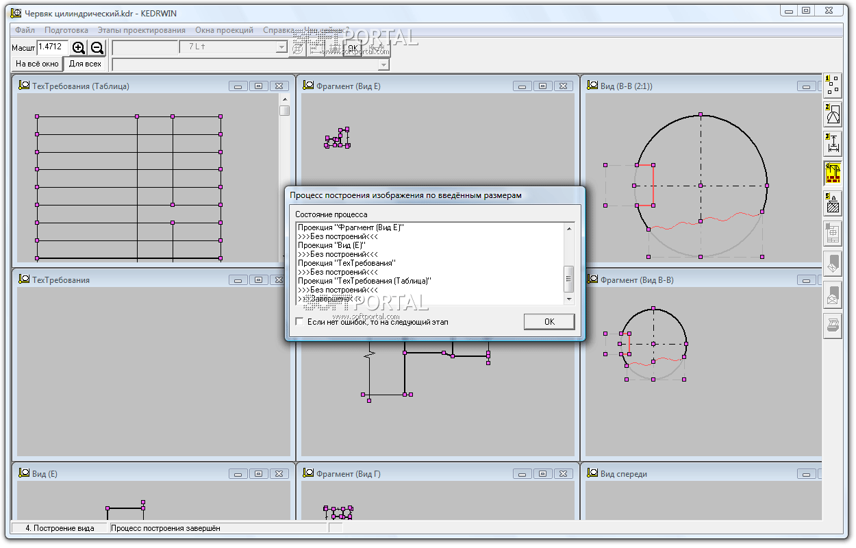 переменными, взятыми из хранимой внутри файла чертежа программы модели, написанной пользователем на встроенном языке моделирования, который близок к языку БЭЙСИК; - поэтапное создание чертежа от раздельного создания описания проекции, до компоновки их на нескольких листах чертежа разных форматов, создание многолистовых документов;