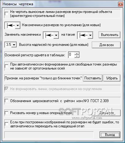 - большой набор инструментов для описания графики, размеров, элементов оформления (тексты, различные штриховки, обозначения шероховатости, допусков формы и расположения поверхностей, обозначения сечений, многообразие выносок);